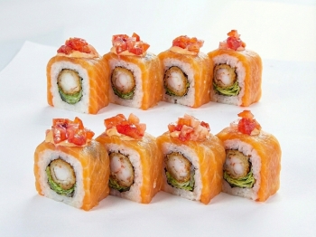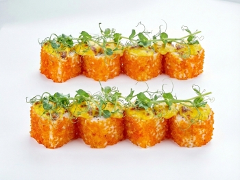 рис, нори, креветки, соус чили, сыр, соус сырный, манго, икра масаго